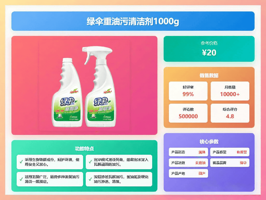 在选择油污清洁剂时,最重要的还是看去油能力,毕竟谁也不想费半天劲还擦不干净。能关注产品介绍中是否提到“强力去油”、“快速溶解油污”等字眼,或者查看是不是添加了特殊的去油成分,如G14净油因子、生物降解配方等,这些都能提升清洁效果。