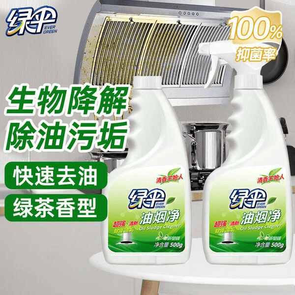 绿伞重油污清洁剂采用无磷生物降解配方,油污去得干净且环保,日常厨房使用更放心。喷头能切换泡沫和喷雾两种模式,喷泡沫能深入清洁死角,喷雾则覆盖更广,清理油烟机、炉灶都很方便。